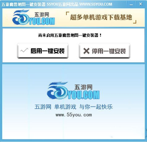 2、打开55YOU魔兽地图一键安装器.exe