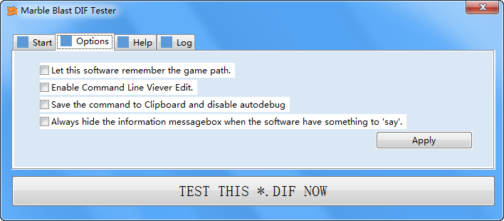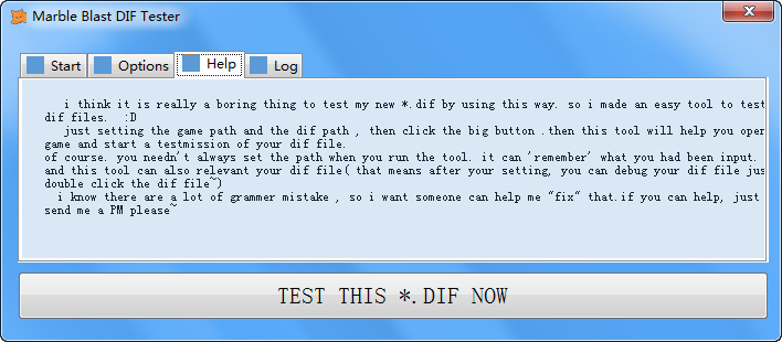 1、程序对中文路径的支持并不好,所以请尽量保证在所需要测试的dif所在路径以及游戏所在路径(以及dif和游戏本身的文件名)中不包含中文(本程序所在路径和本程序的文件名可以包含中文,不影响使用)。