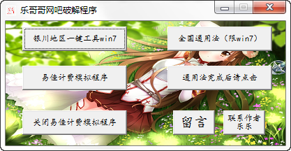 乐哥哥网吧破解程序是一款破解网吧收费系统计费的程序,现在的网吧都是通过账号来记录使用时长然后计费的,本工具是一款专门针对各种网吧计费系统进行破解的工具,能够直接越过网吧计费系统,这样就能够无限上网了。