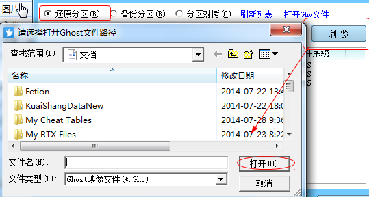 1、先选择“还原分区”,这时点击【浏览】,来查找你备份的地点
