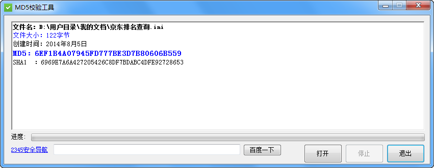 2、将得到的MD5值和文件作者提供的MD5值进行对比,如果和作者提供的MD5码不同,就说明该文件被动过手脚,如果是相同的就说明是没问题的。