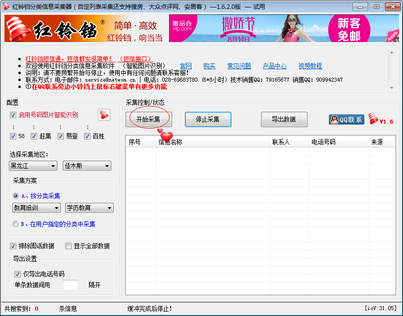 红铃铛分类信息采集器是一款功能很强大的辅助软件,支持号码图片智能识别、自定义分类信息网的列表采集等实用功能,操作非常的简单,你值得拥有哟!
