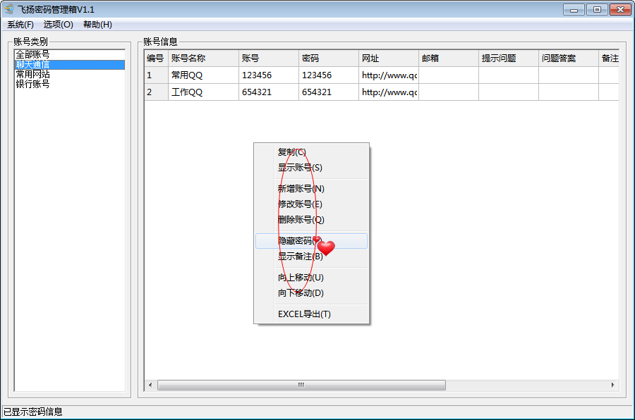 1.这个安全性还是不错的,采用了RC4算法加密数据,登陆密码做为秘钥,而登陆密码也是加密保存的。只有一个主程序和一个数据库文件,可以放在U盘里随身携带。
