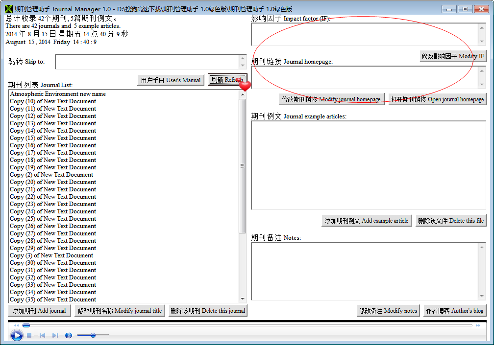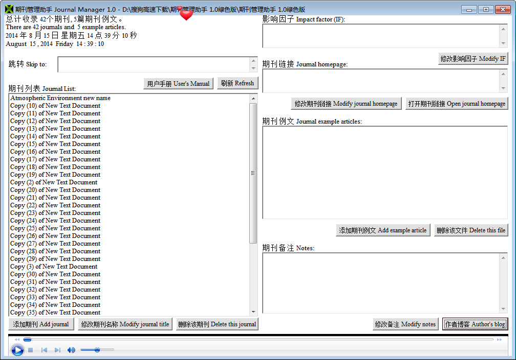 期刊管理助手JM 1.0为学者朋友们提供了管理投稿期刊的基本平台,1.0版本尚不提供各学科主要期刊的信息,需要各位根据研究领域利用JM 1.0、根据自己的需求自行整理。