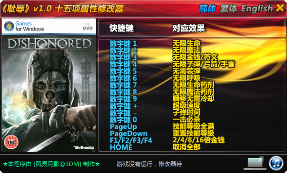 耻辱十五项修改器是一款功能非常强大且绿色免费的辅助修改软件,提供无限生命、无限魔法、无限金钱、无限子弹等实用功能,让你体验不一样的游戏魅力,快来试试吧!
