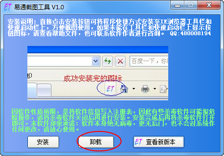 1、双击启动易通截图工具,点击【安装】按钮