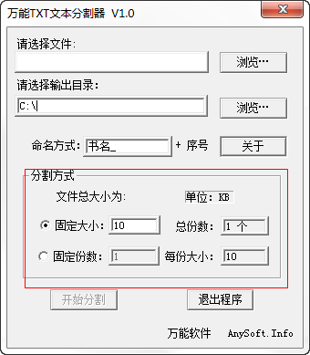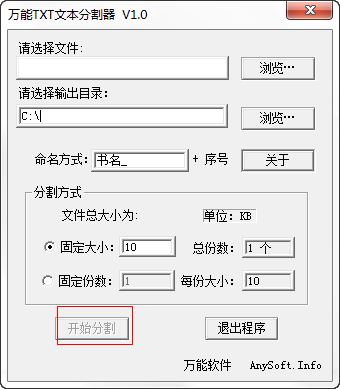 TXT文本分割器能将一个txt文本分割成为多个文件,可按照自定义文档份数以及自定义文档大小进行任意分割。并且支持所生成分割文档的自定义命名,从而方便阅读以及整理txt文本。