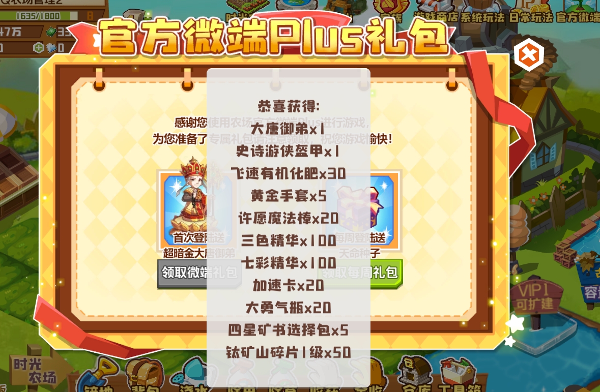 【下载礼包】每个玩家可领取一次,【每周礼包】每周四0点重置。