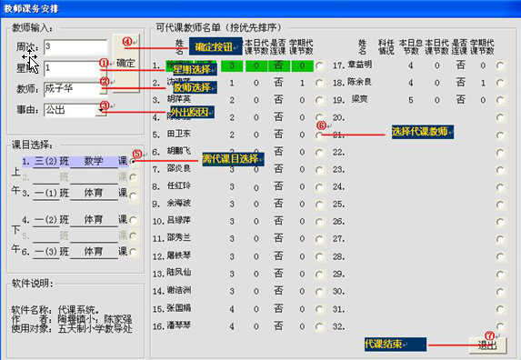 4、对于代课过程中出现的某些错误,程序可以进行修改实时的代课情况,具有很强的容错功能。