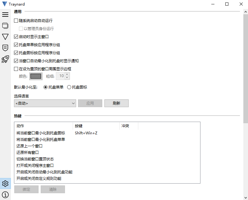 你依旧可以使用默认快捷键shift+ Win + Z,将当前窗口快速最小化到系统托盘,操作逻辑与原版Traymond 保持一致,同时支持在设置里自由修改快捷键。