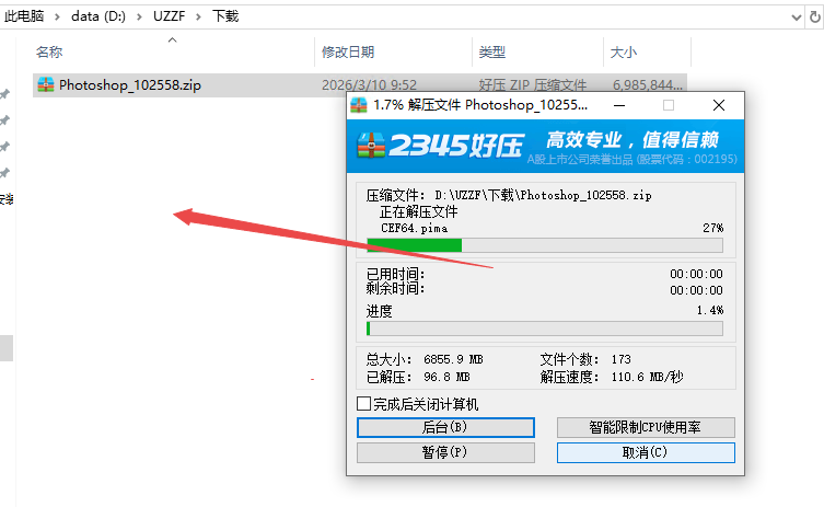 2、然后解压压缩包到当前文件夹