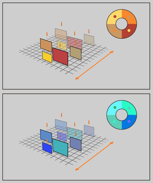 通常情况下,暖色调比冷色调色彩显得更加重;这就是为什么蓝色、绿色和紫色色调给人的感觉会较轻。正因如此,暖色调看起来跟我们离得更近,而冷色调这看上去更远。由此,你可以根据你的需要来选用合适的颜色以表现绘画对象的距离。
