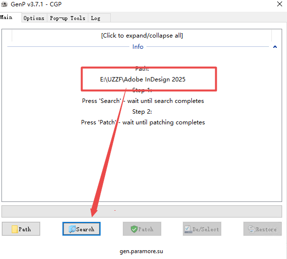 7、如果是安装位置选择默认就可以直接search,如果是其他位置点击path然后找到文件夹