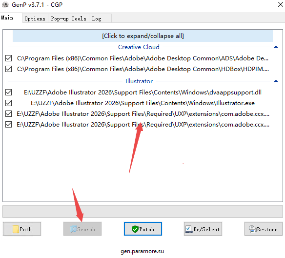 6、然后点击search就可以看到对应的需要激活的版本,然后点击patch即可激活