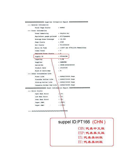 加粉前(更换硒鼓前)脱机打印测试页,检查打印机是用什么版本的芯片。