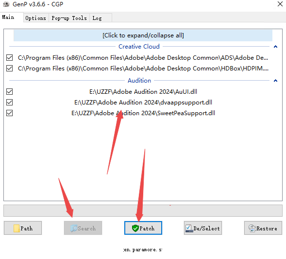 7、点击search可以搜索待激活的软件,然后点击patch进行激活即可