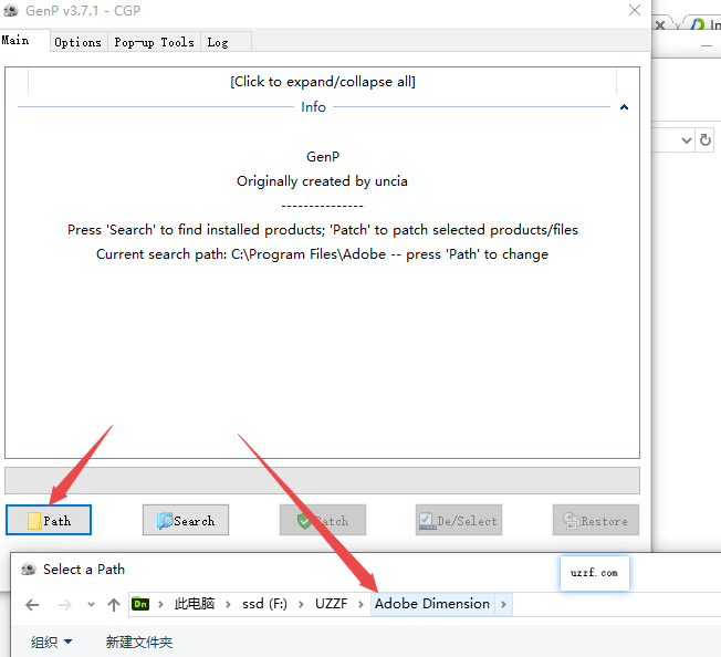 7、点击search即可搜索需要激活的版本,然后继续点击patch即可免费激活软件