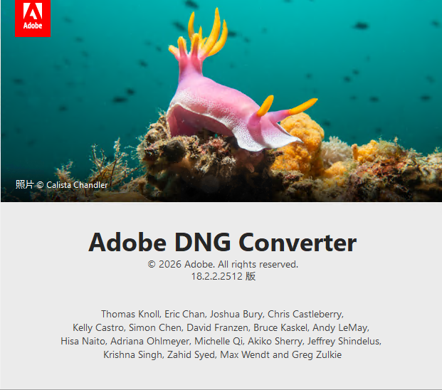 Adobe DNG Converter2026最新版(dng图片转换工具)是Adobe推出的免费RAW格式转换工具,专为摄影师与后期从业者打造。它支持数百款新款相机型号,可将专属RAW文件无损转为通用DNG格式,完整保留EXIF、白平衡等原始信息。