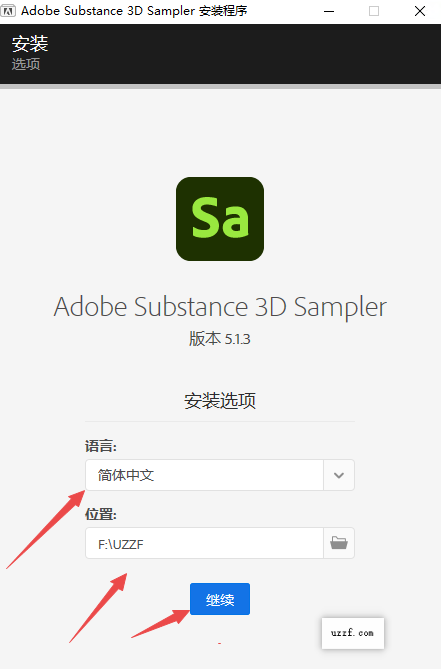 2、然后选择文件安装位置,默认中文模式,点击继续安装