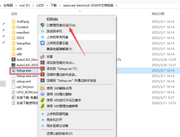 2、然后打开setup安装程序,右键管理员运行