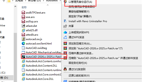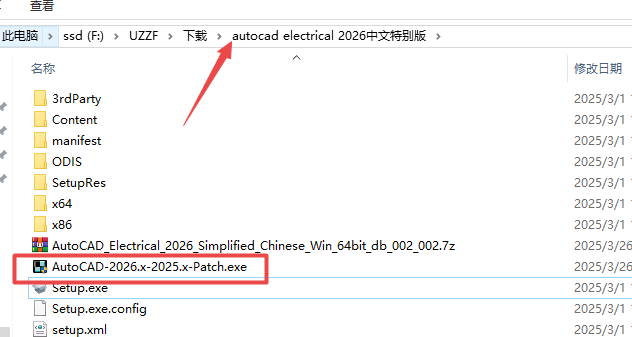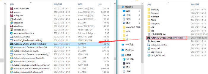 9、然后返回文件夹找到下列AutoCAD-2026.x-2025.x-Patch.exe程序,点击复制该程序