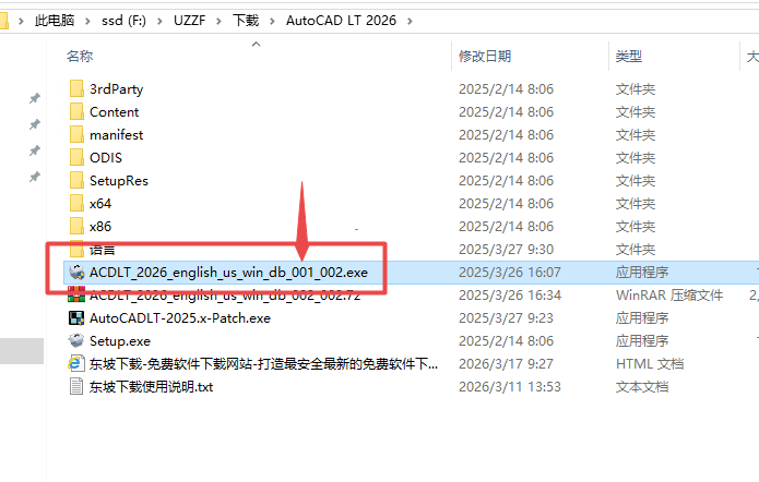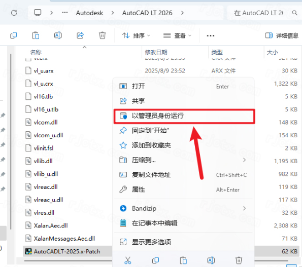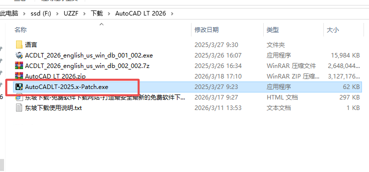 11、继续返回文件夹,找到注册机AutoCADLT-2025.x-Patch.exe,点击复制