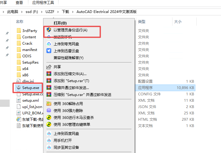 1、下载压缩包解压后打开setup程序,右键管理员启动