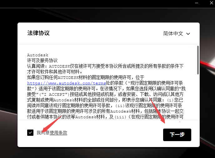 2、点击接受然后继续下一步