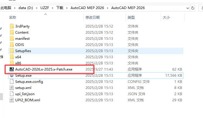 5、然后返回文件夹,找到注册机AutoCAD-2026.x-2025.x-Patch.exe,复制注册机到软件所在文件夹