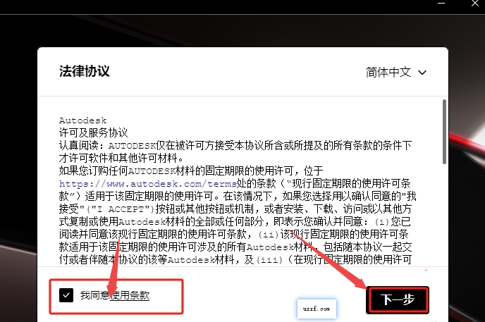 2、点击同意,然后继续下一步