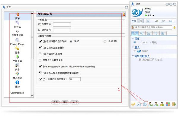 10.设置中心:修改个人密码,聊天设置,及多媒体设置等用户自定义设置。