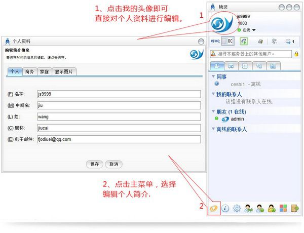 点击头像或左下角“主菜单”,进入个人设置中心,填写和修改个人资料,和个人形象及头像的设置,让好友更好更快的识别和找到你。