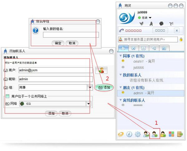 点击“1”弹出“添加联系人窗口”输入联系人昵称。