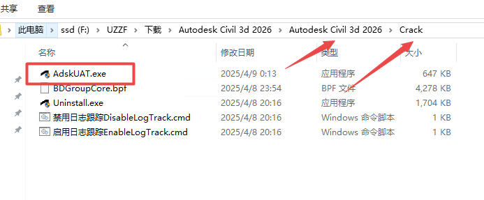 7、然后返回文件夹,打开crack文件夹里面的AdskUAT.exe激活工具
