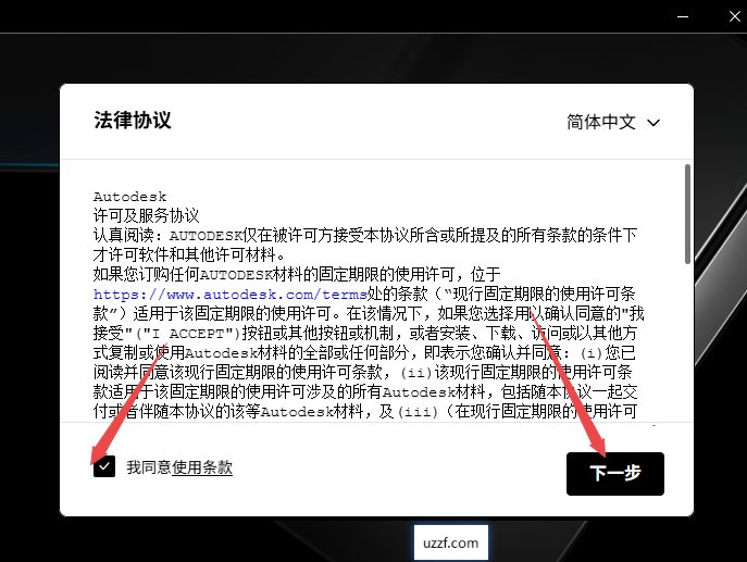 2、然后选择同意继续选择下一步