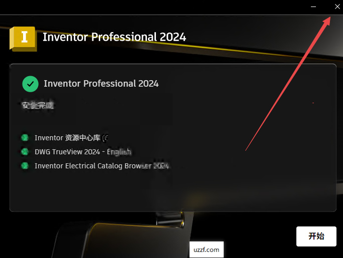 6、安装完成后不要点击开始,点击右上角关闭程序