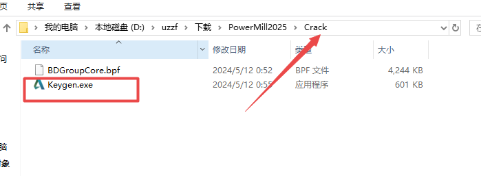 9、然后返回文件夹找到crack文件里面的激活工具,直接打开