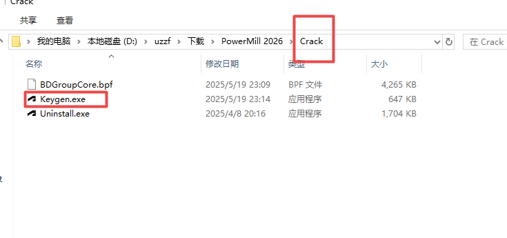 6、然后返回文件夹找到crack文件里面的激活工具keygen.exe,右键管理员打开