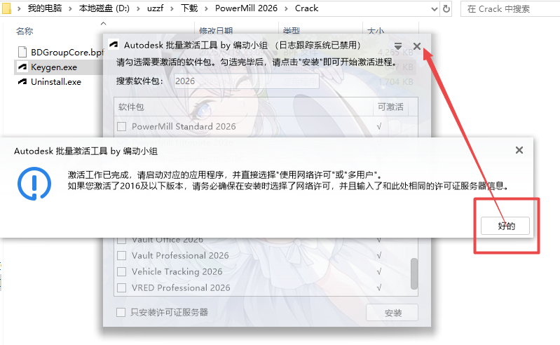 8、激活完成点击好的,然后关闭激活工具