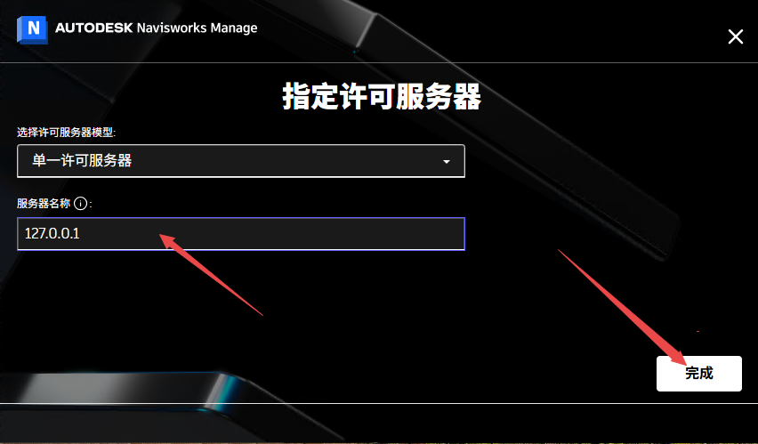 11、输入服务器名称【127.0.0.1】,点击【完成】