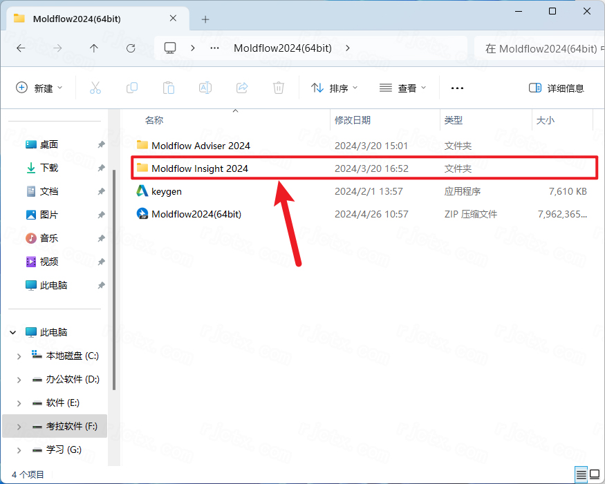 12、打开解压后的【Moldflow2024(64bit)】文件夹,双击打开【Moldflow Insight 2024】文件夹