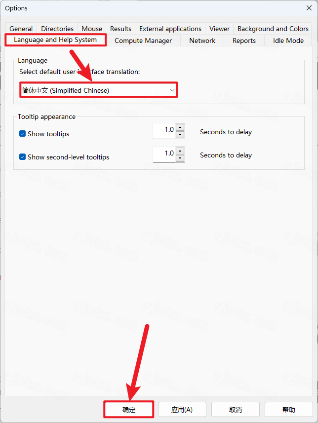 20、点击【Language and Help System】,选择【简体中文】,点击【确定】