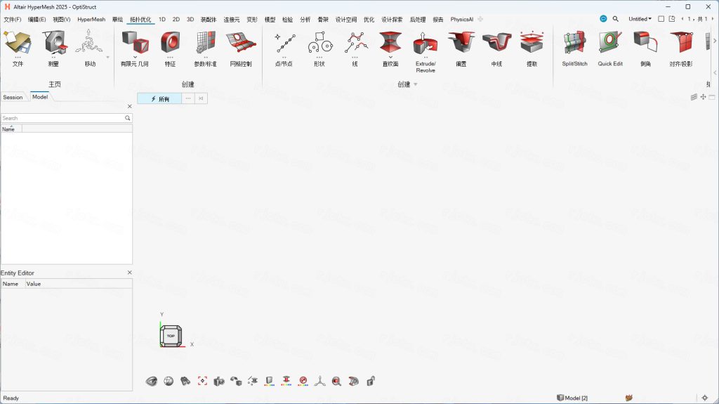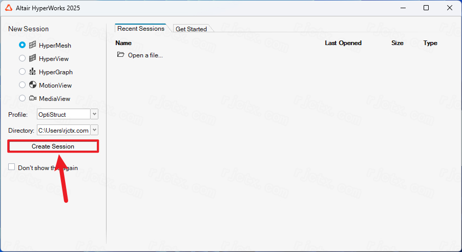 打开HyperWorks2025→选择HyperMesh→CreateSession。