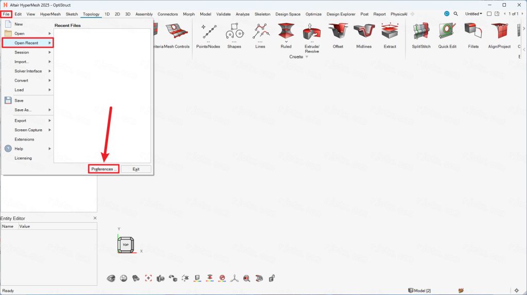 打开HyperWorks→HyperMesh→选好求解器模板(如OptiStruct)。