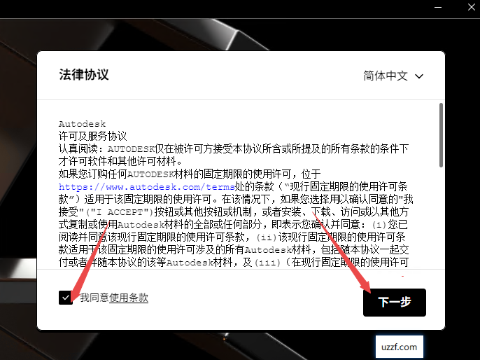 4、点击同意然后继续下一步