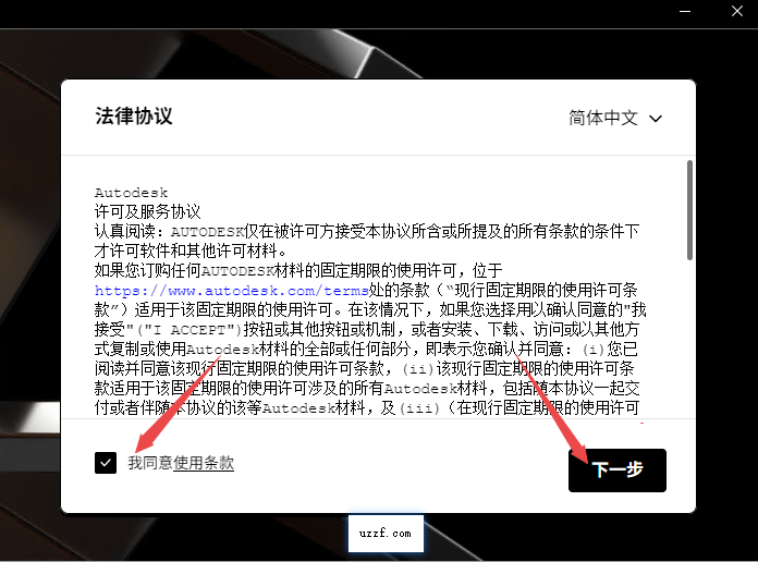 2、点击同意然后继续下一步