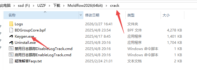 7、然后返回文件夹,找到crack里面的keygen.exe激活工具,右键管理员打开