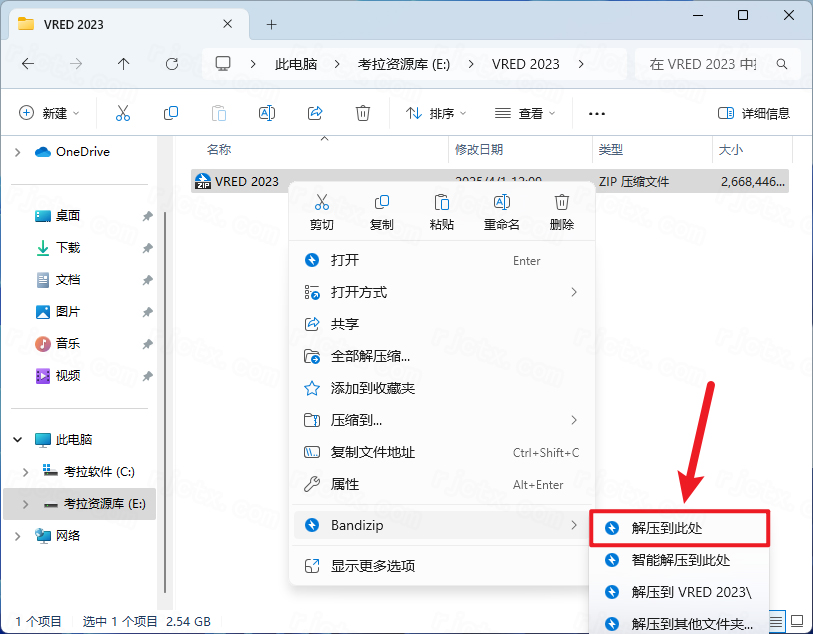1.下载完成后,鼠标右击【VRED 2023】压缩包,选择【解压至此处】