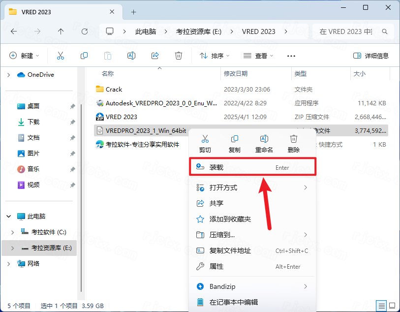 2.找到【VREDPRO_2023…】文件,右键点击【装载】