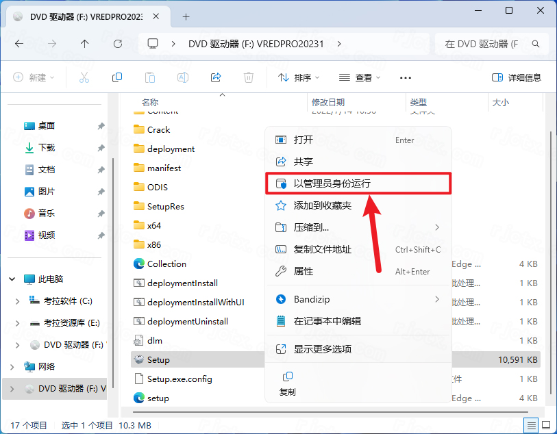3.找到【Setup】应用程序,右键选择【以管理员身份运行】它